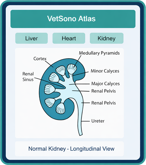 The VetSono Atlas is designed specifically for veterinary professionals using ultrasound in clinical practice. Our comprehensive library provides detailed, organ-by-organ learning resources to enhance your diagnostic capabilities.